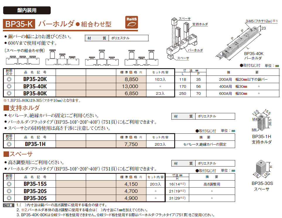 BP35-20S バーホルダ 組合せ型 スペーサ 20コ入