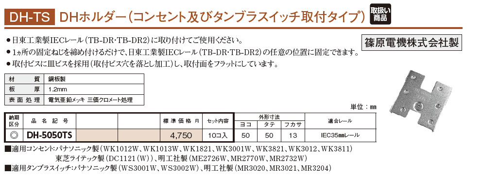 DH-5050TS DHホルダー(コンセント及びタンブラスイッチ取付タイプ) 10コ入