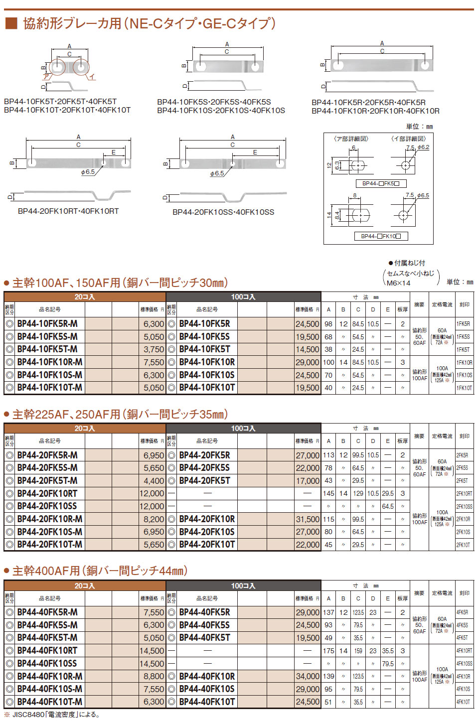 BP44-10FK10T-M 分岐リード板 協約形ブレーカ用 主幹100AF、150F用(20コ入)