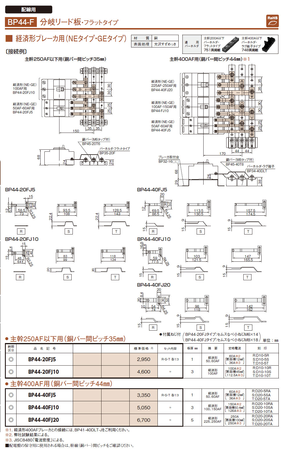 BP44-20FJ10 分岐リード板 経済形ブレーカ用 主幹250AF以下用