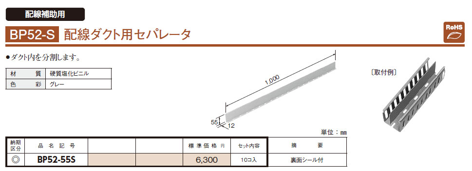 BP52-55S 配線ダクト用セパレータ 10コ入