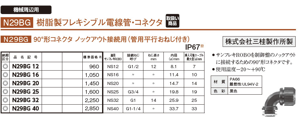 N29BG 12 90°形コネクタ ノックアウト接続用