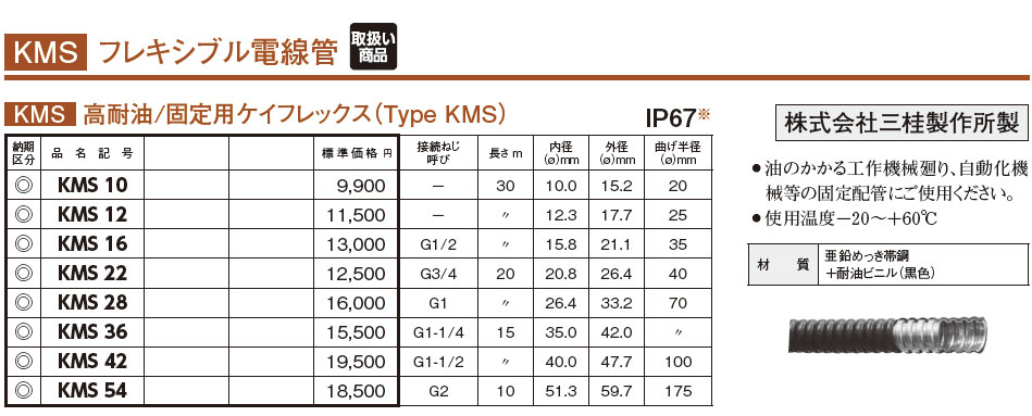 KMS 22 フレキシブル電線管   高耐油/固定用ケイフレックス