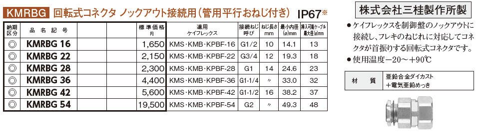 KMRBG 54 フレキシブル電線管  回転式コネクタ ノックアウト接続用