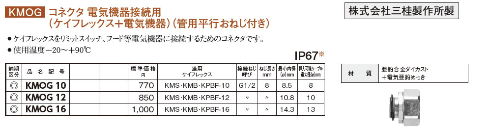 KMOG 10 フレキシブル電線管  コネクタ 電気機器接続用