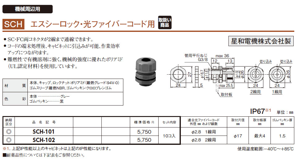 SCH-102 エスシーロック 光ファイバーコード用 10コ入