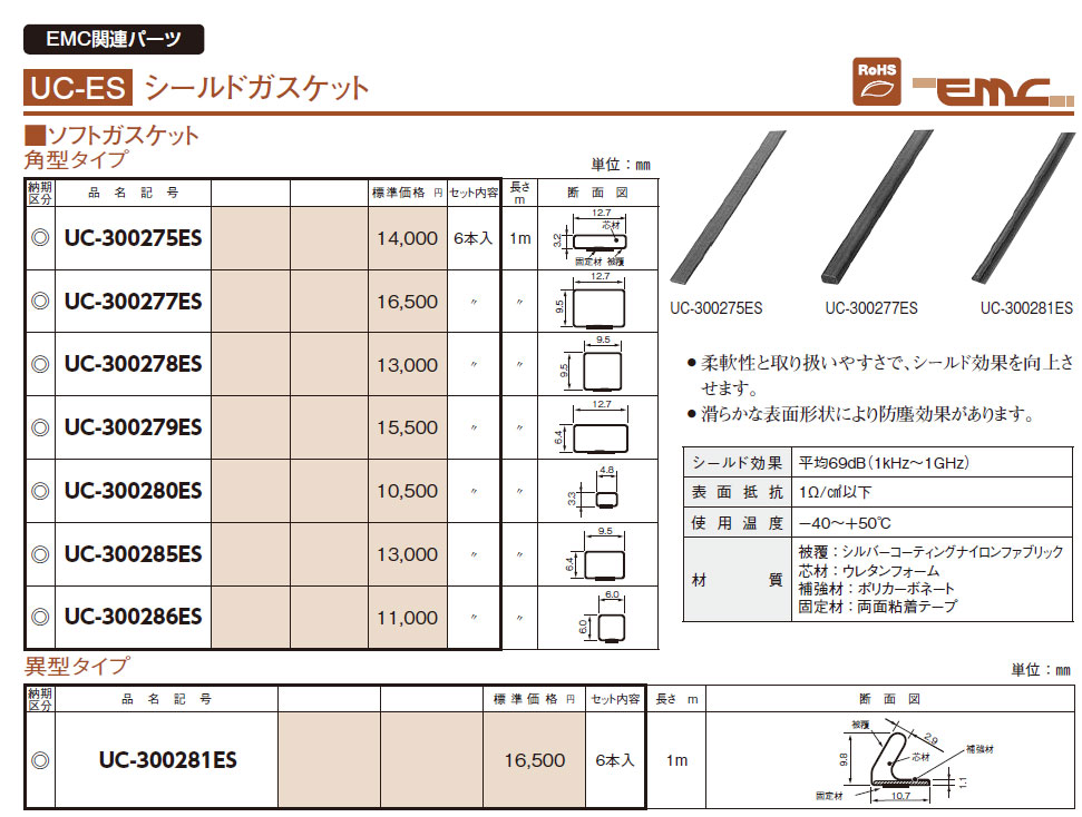 UC-300280ES シールドガスケット ソフトガスケット 角型タイプ