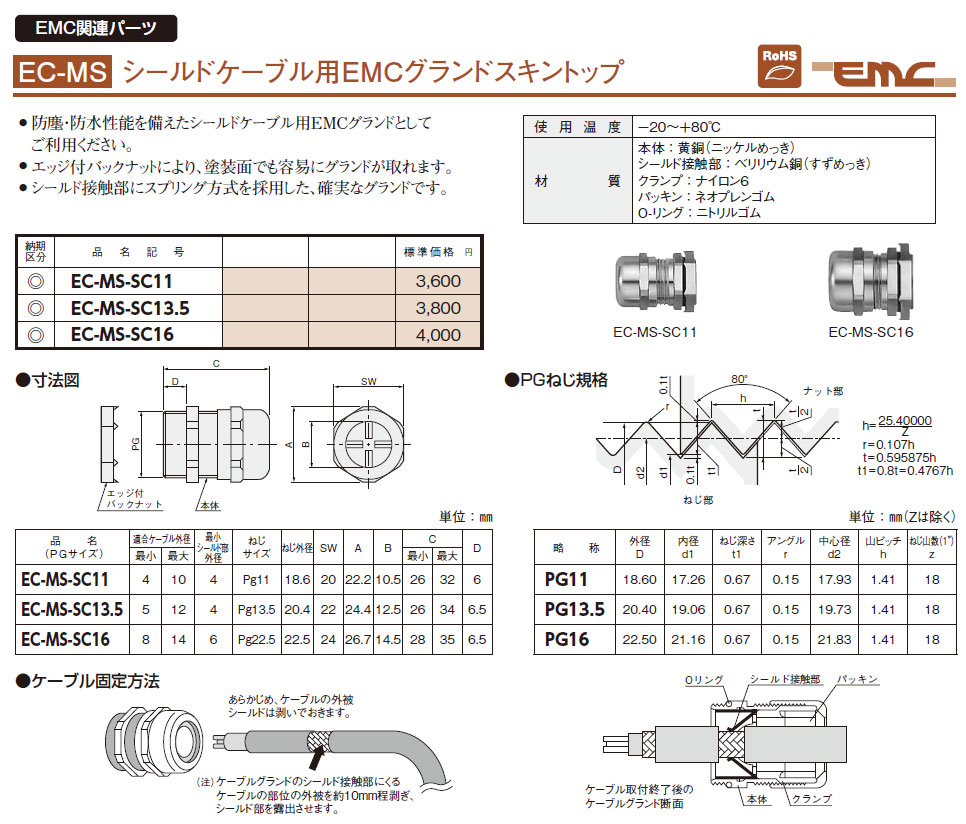 EC-MS-SC11 シールドケーブル用EMCグランドスキントップ