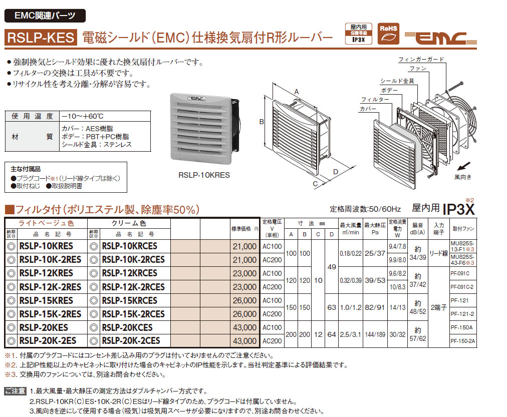 RSLP-12KRES 電磁シールド(EMC)仕様換気扇付R形ルーバー