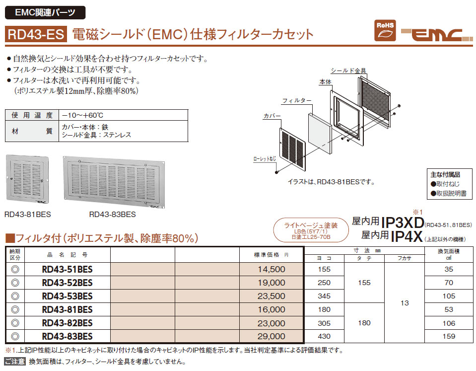 RD43-51BES 電磁シールド(EMC)仕様フィルターカセット