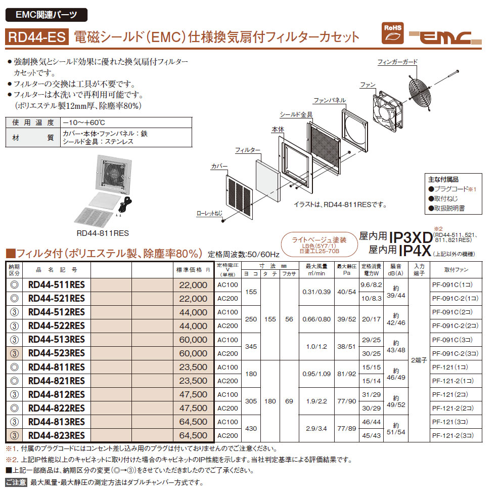 RD44-522RES 電磁シールド(EMC)仕様換気扇付フィルターカセット
