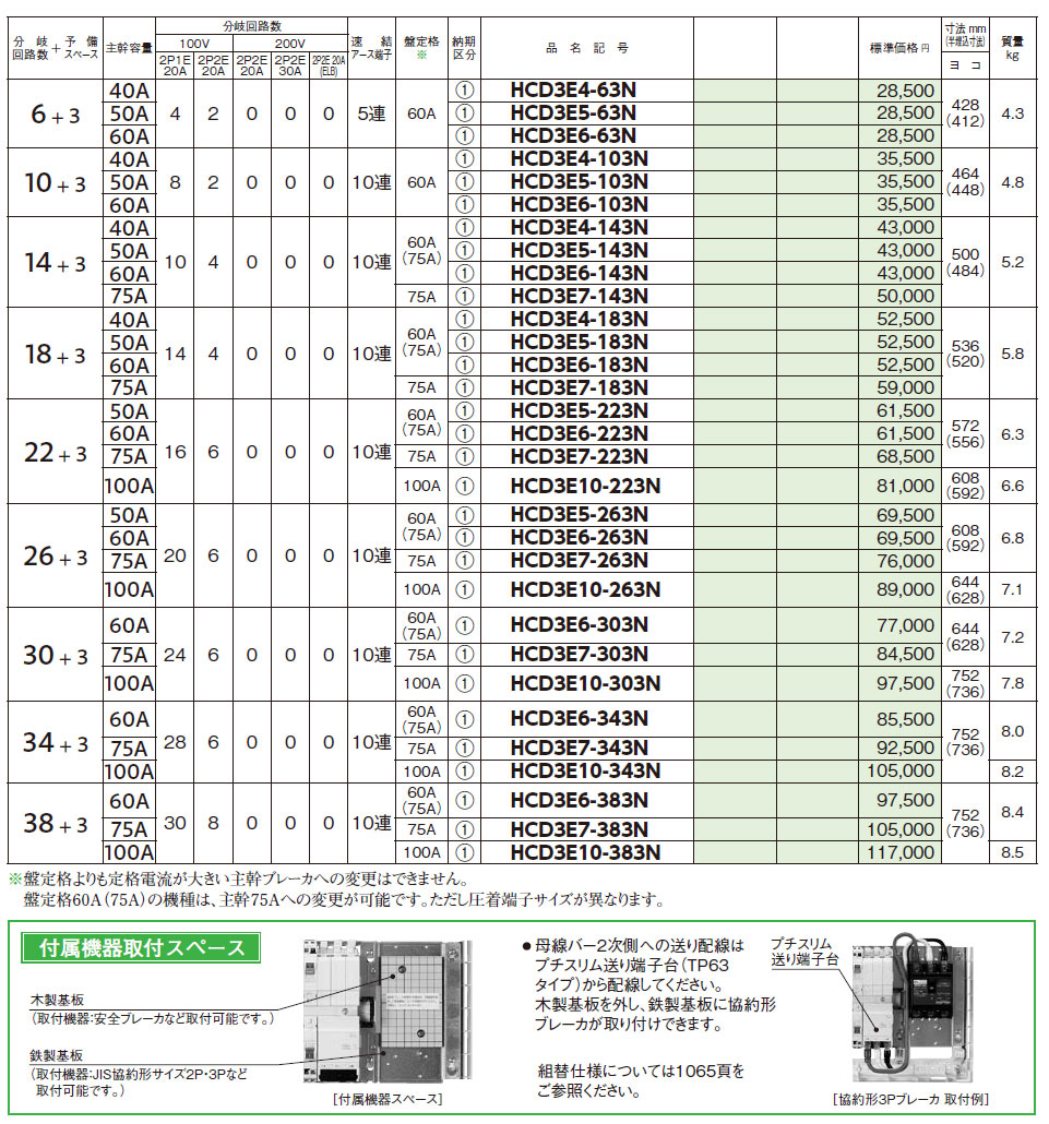HCD3E10-383N HCD形ホーム分電盤(ドア付)付属機器取付スペース付 38+3 100A