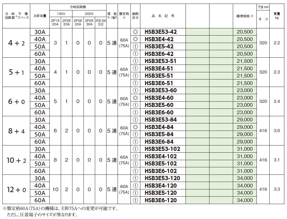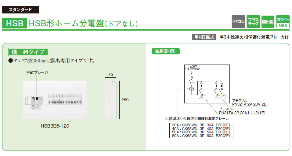 HSB3E4-42 HSB形ホーム分電盤(ドアなし) 4+2 40A