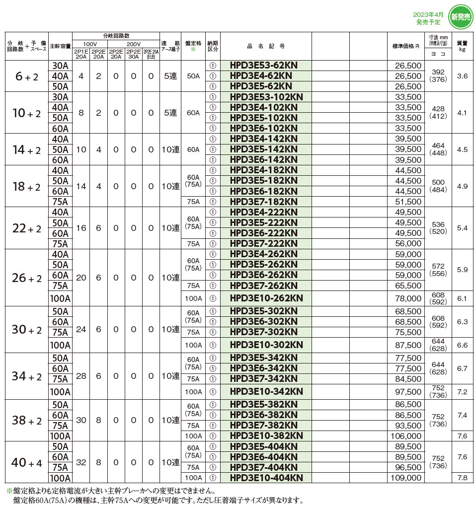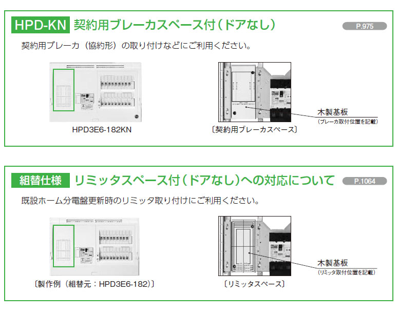 HPD3E5-62KN HPD形ホーム分電盤(ドアなし)契約用ブレーカスペース付 6+2 50A