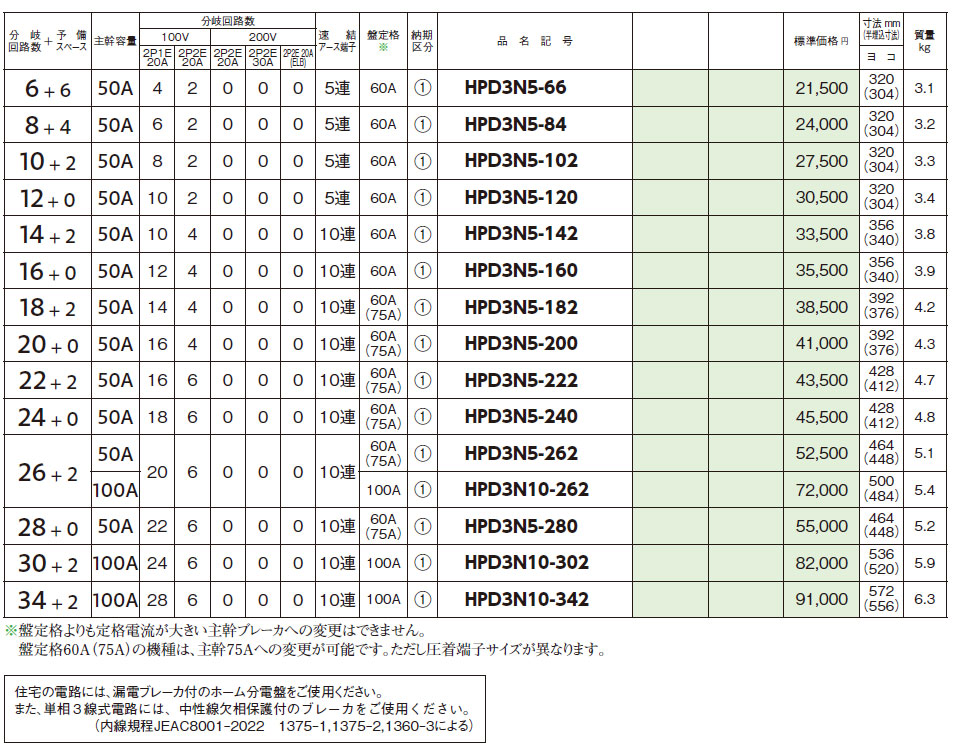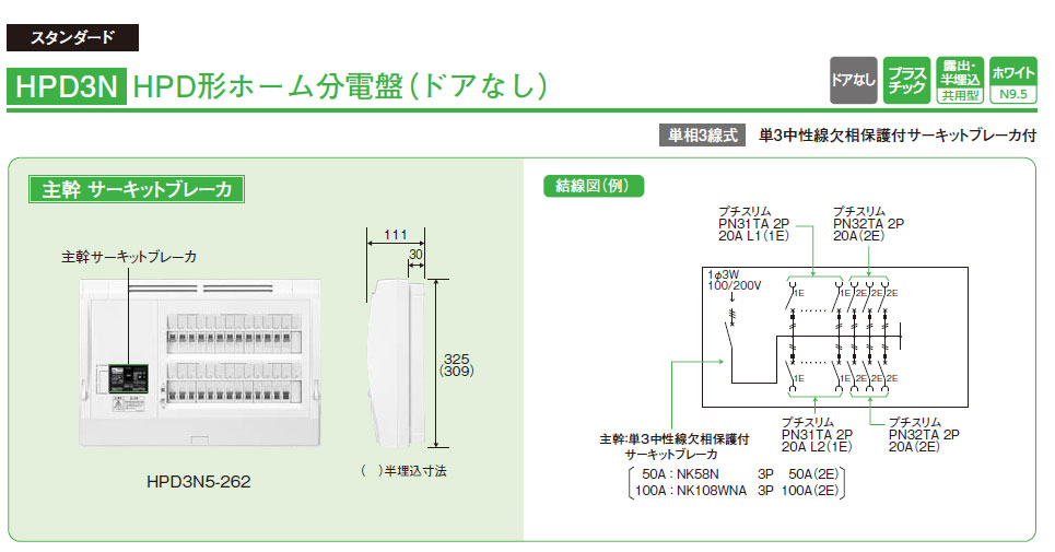 HPD3N5-142 HPD形ホーム分電盤(ドアなし)主幹サーキットブレーカ 14+2 50A