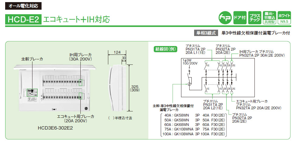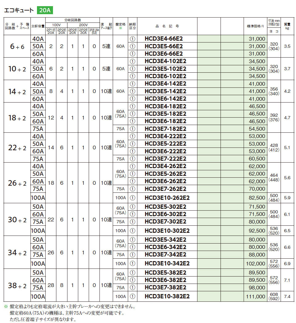 HCD3E4-66E2 HCD-E2 ホーム分電盤 オール電化対応 エコキュート+IH対応 6+6 40A