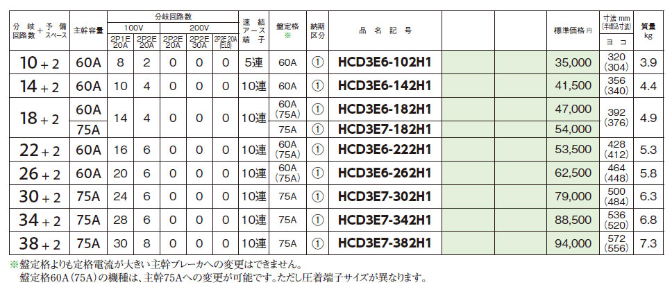 HCD3E6-102H1 HCD-H1 ホーム分電盤 非常用一次送り回路付(ドア付) 10+2 60A