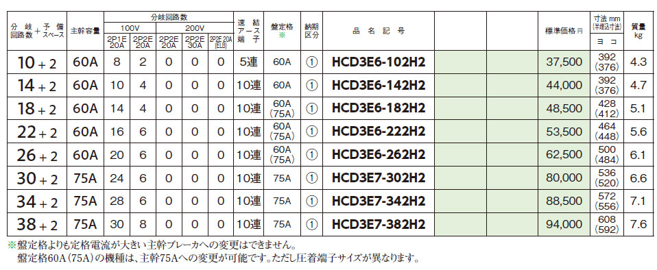 HCD3E6-222H2 HCD-H2 ホーム分電盤 非常用一次送り2回路付(ドア付) 22+2 60A