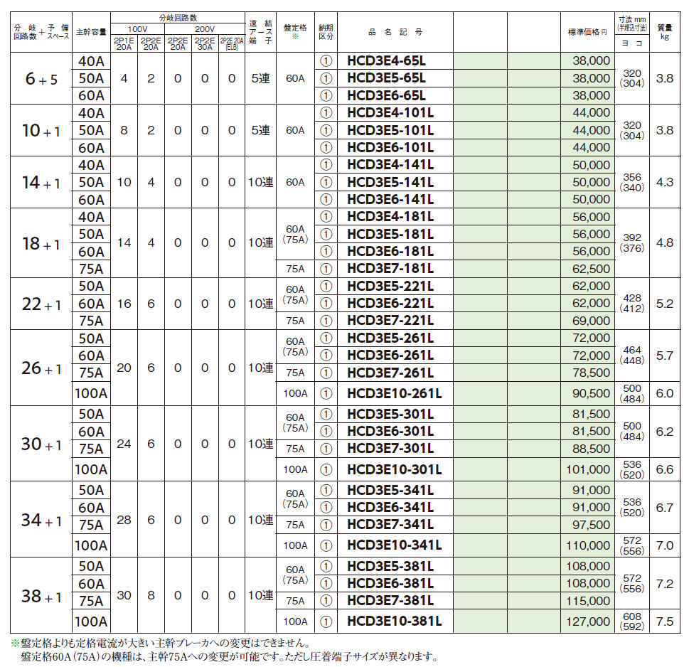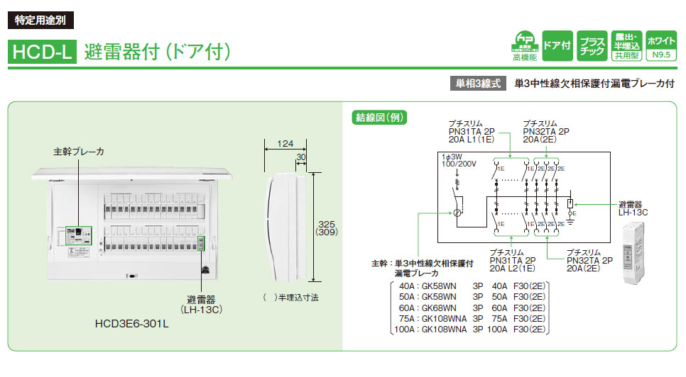 HCD3E4-65L HCD-L ホーム分電盤  避雷器付(ドア付) 6+5 40A