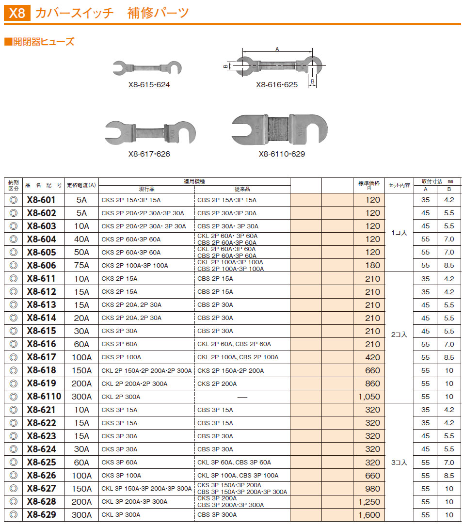 X8-622 カバースイッチ 補修パーツ 開閉器ヒューズ