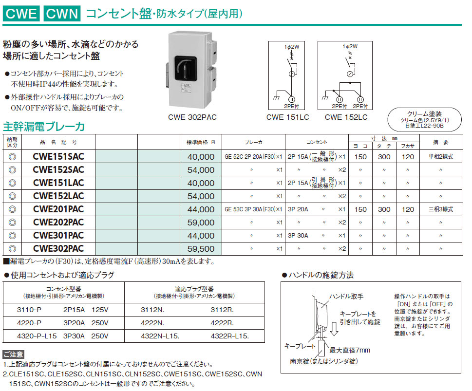 CWE152LAC 標準分電盤 コンセント盤・防水タイプ(屋内用) 主幹漏電ブレーカ