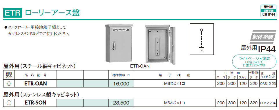 ETR-SON ローリーアース盤 屋外用(ステンレス製キャビネット)