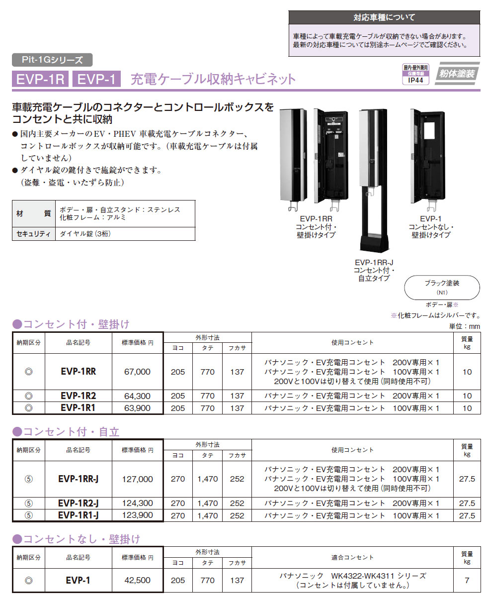 EVP-1R2 充電ケーブル収納キャビネット コンセント付・壁掛け