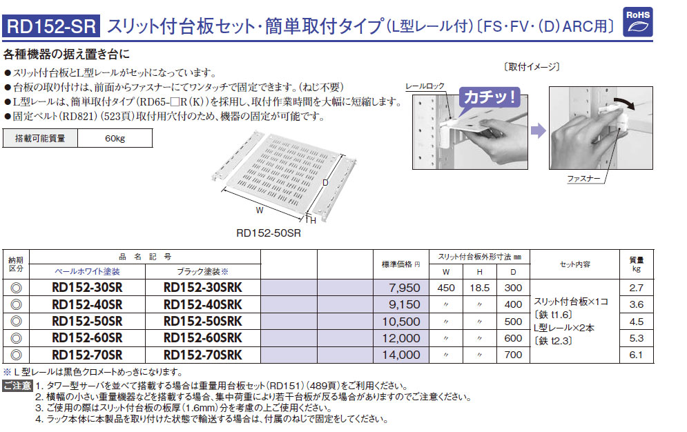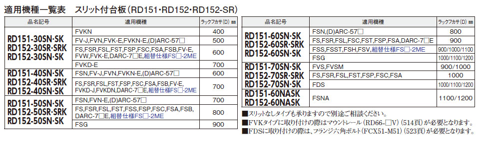 RD152-40SR スリット付台板セット・簡単取付タイプ(L型レール付)〔FS・FV・(D)ARC用〕
