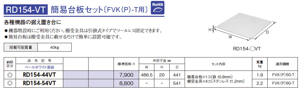 RD154-54VT 簡易台板セット〔FVK(P)-T用〕