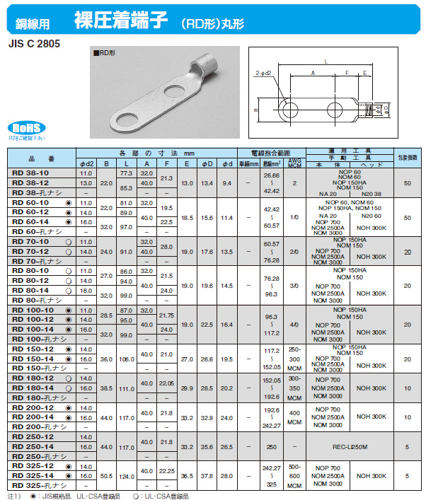 銅線用裸圧着端子(RD形)丸形 RD80