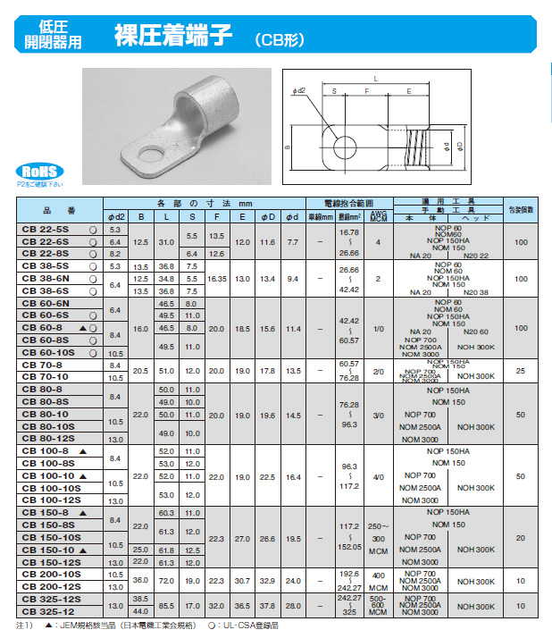 低圧 開閉器用裸圧着端子(CB形) CB60