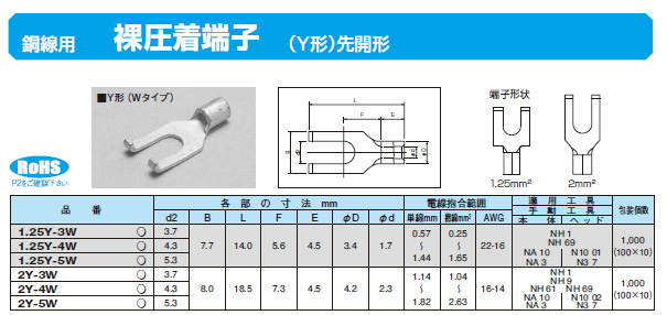 銅線用裸圧着端子(Y形)先開形 2Y-W
