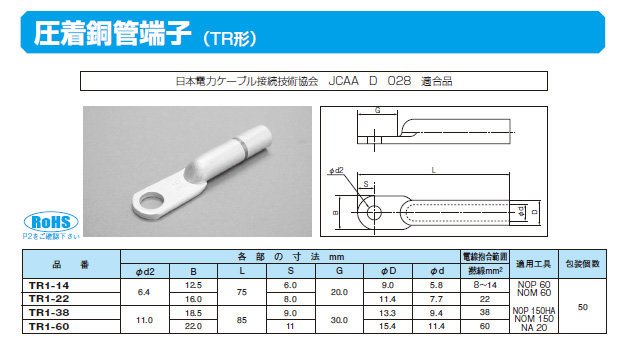 圧着銅管端子 TR1-14