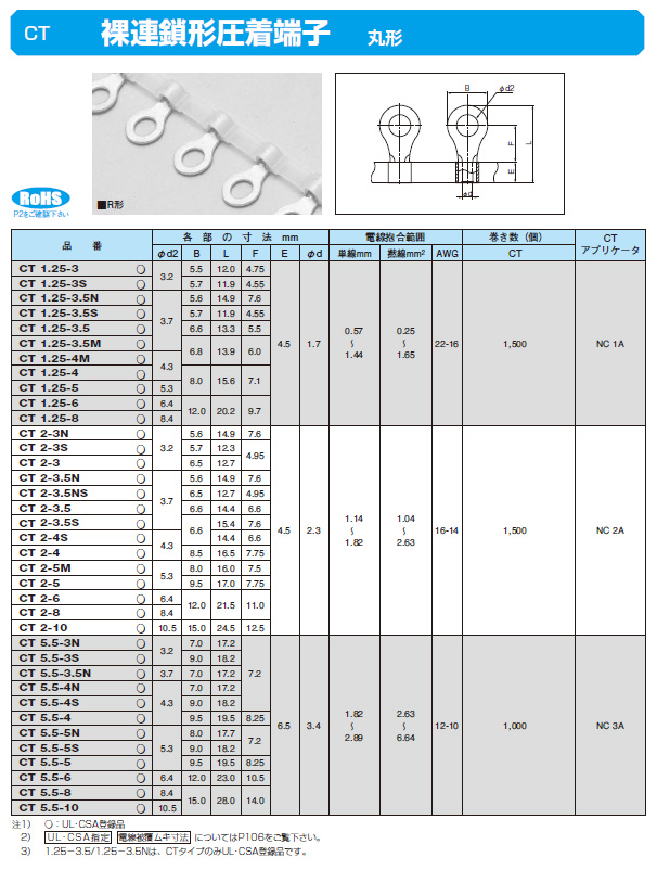 裸連鎖形圧着端子 CT 5.5