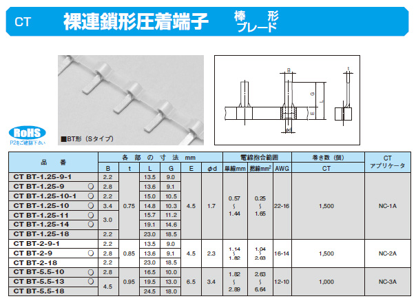 裸連鎖形圧着端子 CT BT-1.25