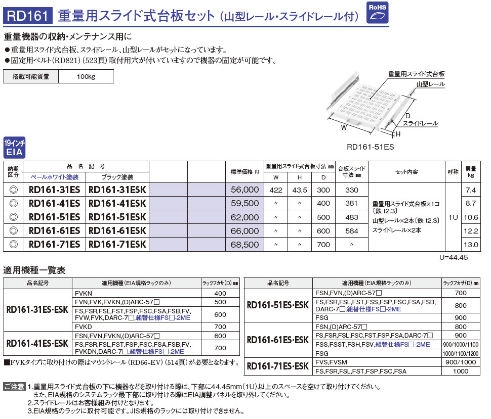 RD161-41ES 重量用スライド式台板セット(山型レール・スライドレール付)