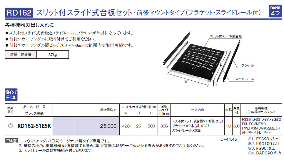 RD162-51ESK スリット付スライド式台板セット 前後マウントタイプ(ブラケット・スライドレール付)