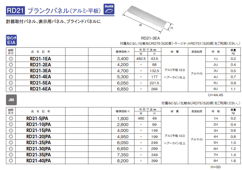 RD21-5JPA ブランクパネル(アルミ・平板)