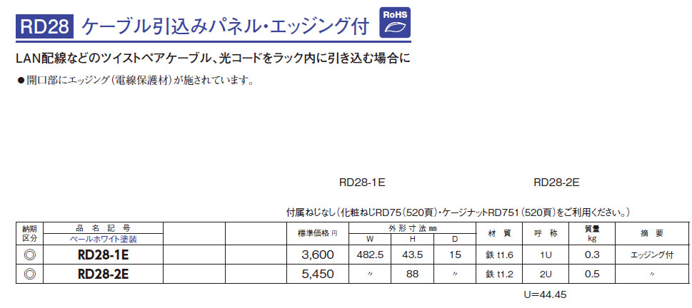 RD28-2E ケーブル引込みパネル・エッジング付