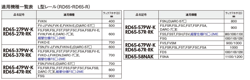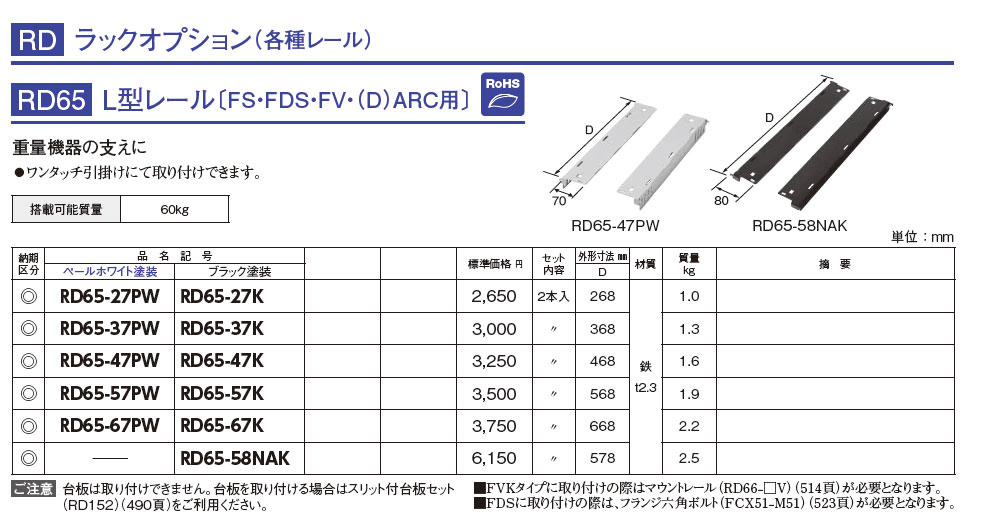 RD65-27PW L型レール〔FS・FDS・FV・(D)ARC用〕