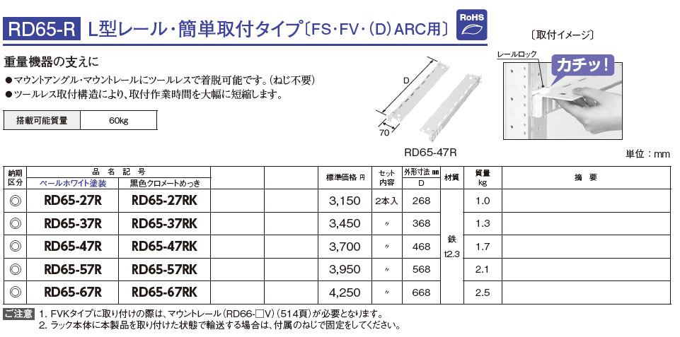 RD65-27R L型レール・簡易取付タイプ〔FS・FDS・FV・(D)ARC用〕