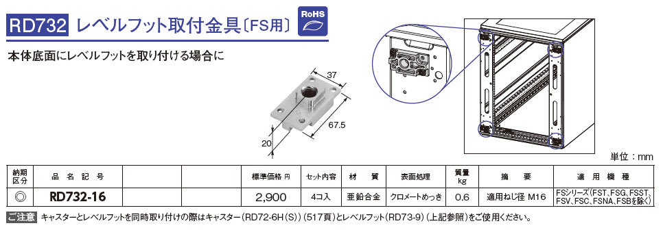 RD732-16 レベルフット取付金具(FS用)