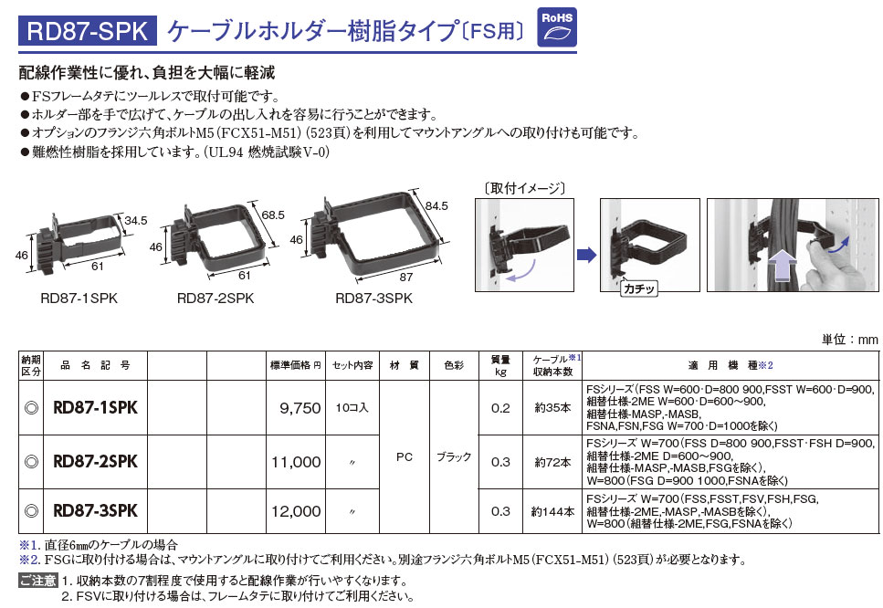 RD87-2SPK ケーブルホルダー樹脂タイプ〔FS用〕