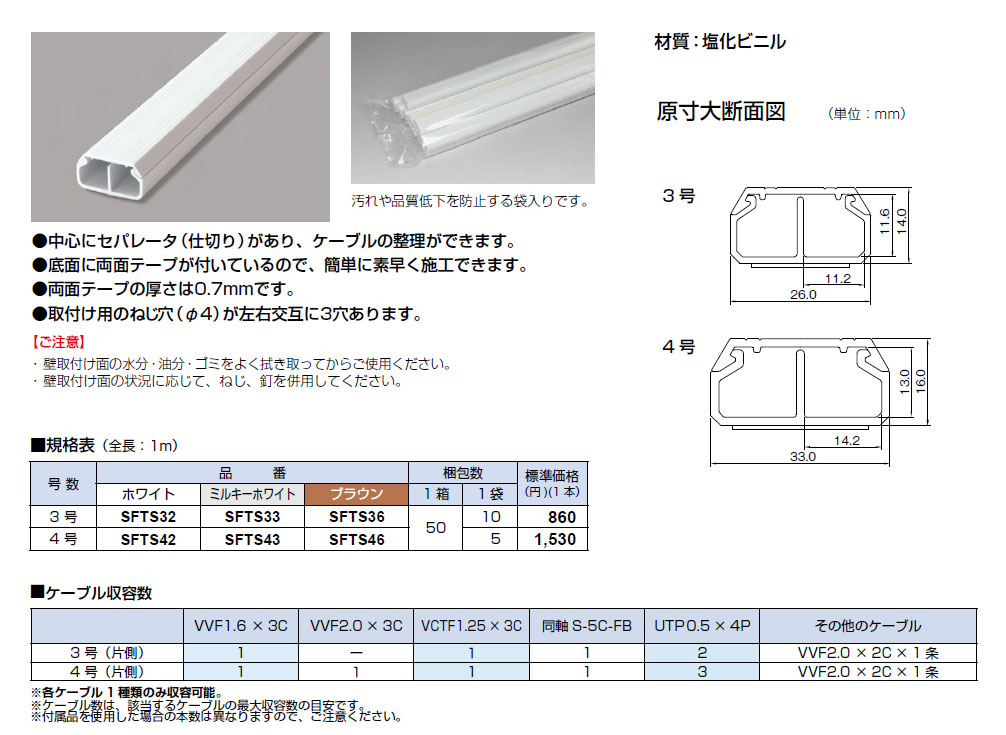 SFTS42 テープ付ニューエフモール セパレートタイプ1m 4号 1袋(5本入)