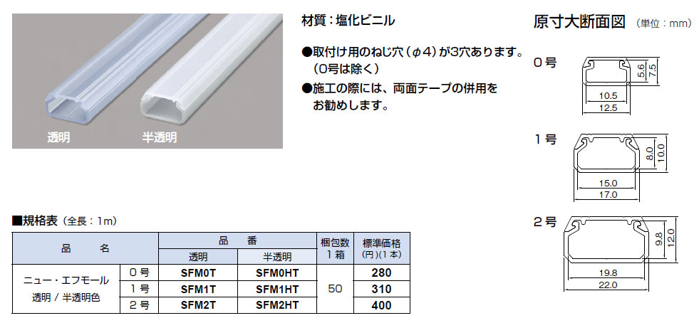 SFM2T ニューエフモール透明/半透明1m 2号 1箱(50本入)