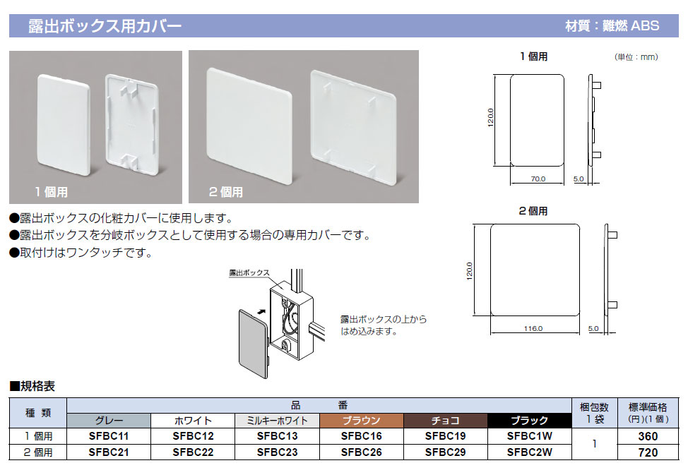 SFBC11 ニューエフモール 露出ボックス用カバー1個用 1袋(1個入)