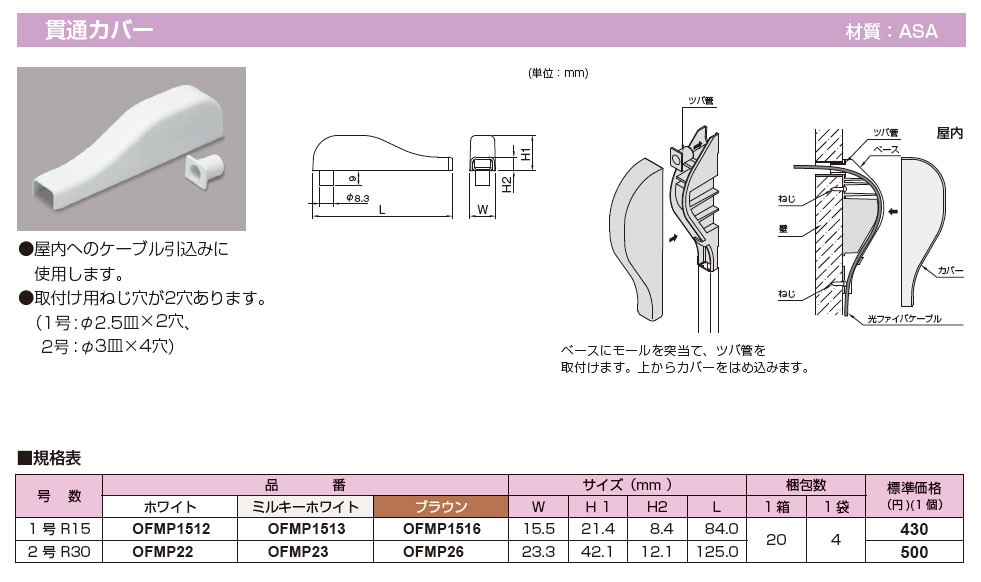 OFMP1512 オプトモール 貫通カバー 1号 1袋(4個入)