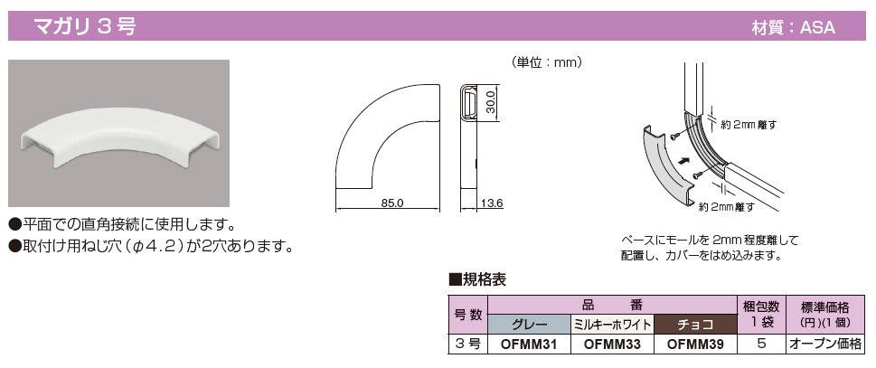 OFMM31 屋外用オプトモール3号 マガリ 1袋(5個入)