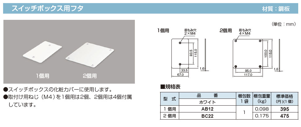 AB12 メタルモール スイッチボックス用フタ1個用 1袋(1個入)