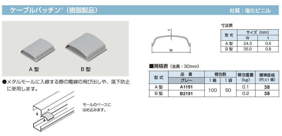 B2151 メタルモールB型 ケーブルパッチン(樹脂製品) 1袋(50個入)